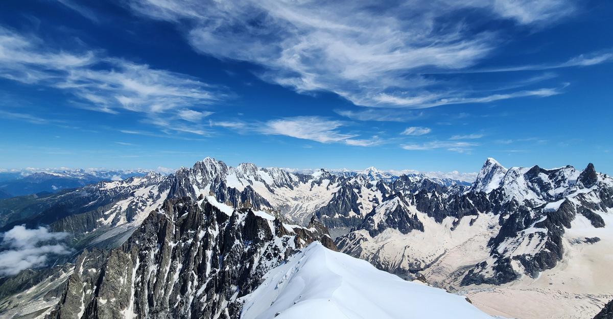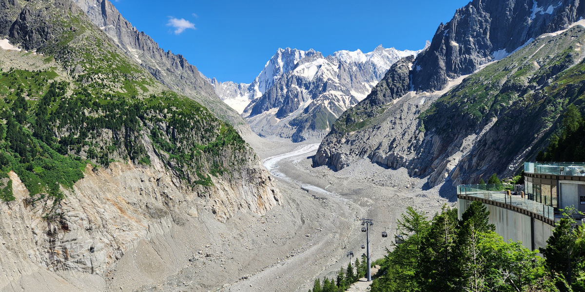 Сразу на входе открывается потрясающий вид на Монблан. Вид такой, что невозможно оторвать глаз.