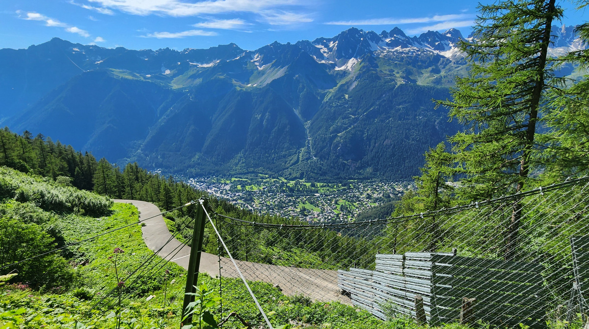 Закончив прогулку, мы не стали дожидаться шаттла и пошли пешком вниз, в Лез-Уш (раз в Шамони тропа закрыта).