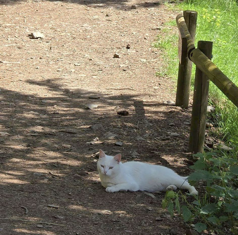Белый кот в парке Мерлет. Я сразу дала ему кличку — «Монблан».